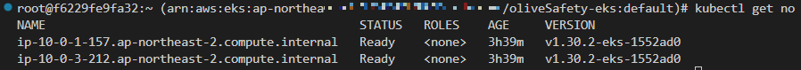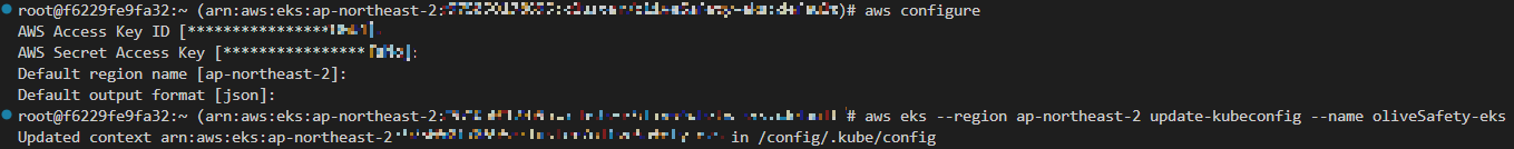 2. aws eks --region [Region name] update-kubeconfig --name [EKS name]을 통해 Kubeconfig 파일 내 클러스터의 접속 정보도 업데이트했다.