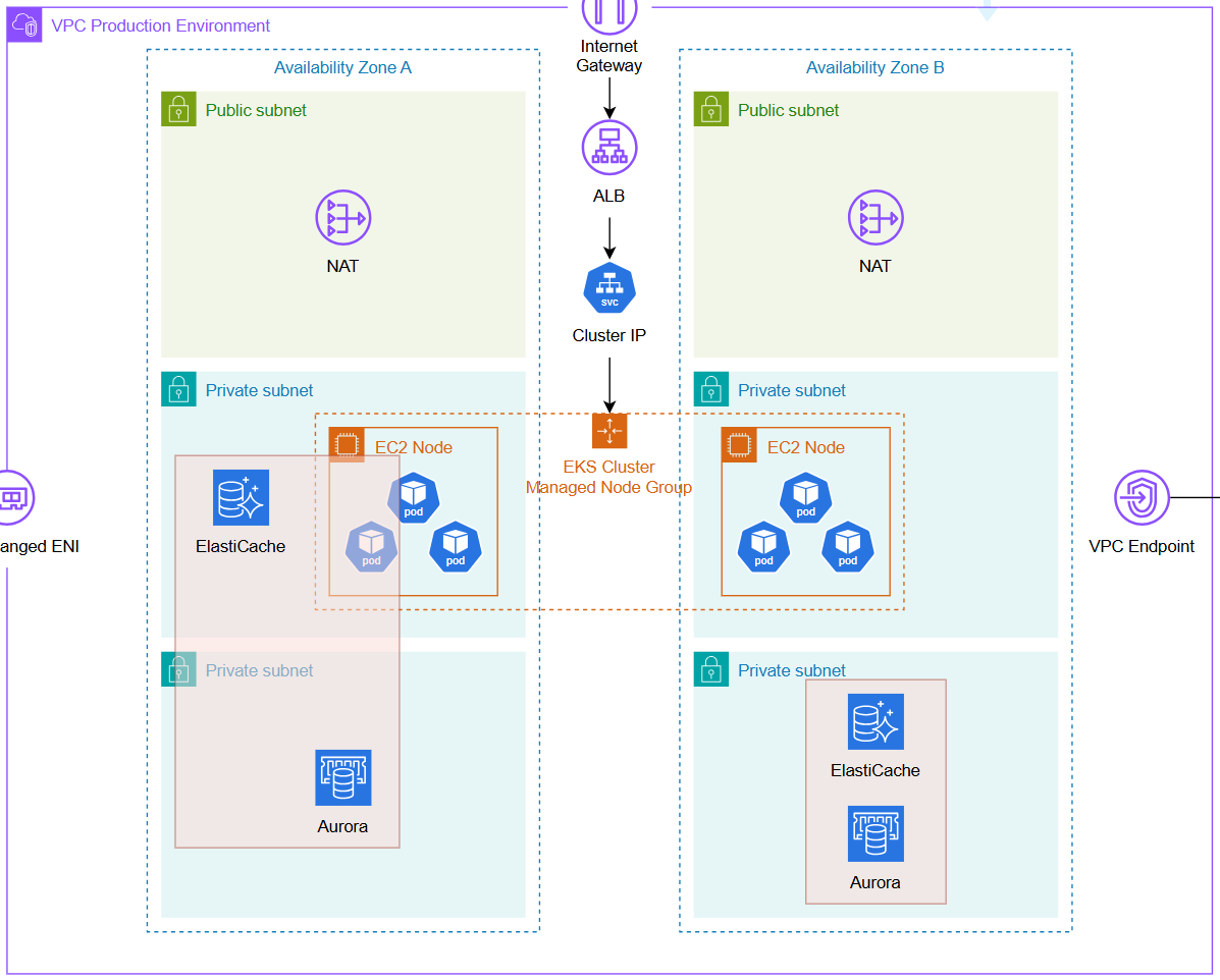 팀 프로젝트에서 아키텍처를 구성하며 실제로 구축까지 완료해야 했는데 우리의 아키텍처에서 붉은 박스 영역을 보면 ElastiCache를 배치할 Private Subnet 중 Application Subent, DB Subnet 어디에 배치해야할지 감이 잡히지 않았다.